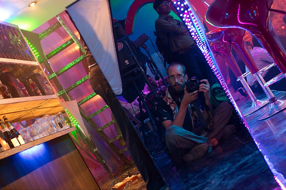 Jedziemy na miejsce klimatyzowanym vanem razem z 10 innymi białasami. Kręcą teledysk do jakiegoś disco kawałka, dekoracja sceny jak z jakiegoś horroru klasy B, ale jest kolorowo, dobry materiał na foty. Naszym zadaniem jest stanie na obrzeżach głównej sceny, trzymanie szklanek z rozrobioną colą (że niby jest to whisky), dziewczyny mają drinki z parasolkami itp, i – najtrudniejsza rzecz – udawanie, że się dobrze bawimy. A że mało kto z nas szlaja się po tego typu dyskotekach to idzie to opornie i ktoś z ekipy filmowej co chwila podchodzi i powtarza “don’t stay, dance, enjoy the music“.
