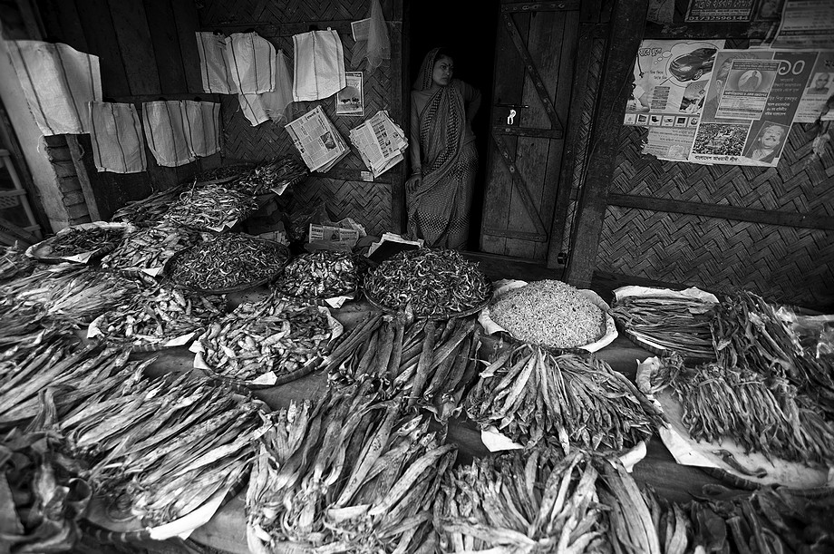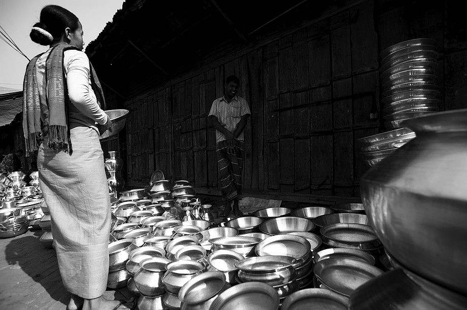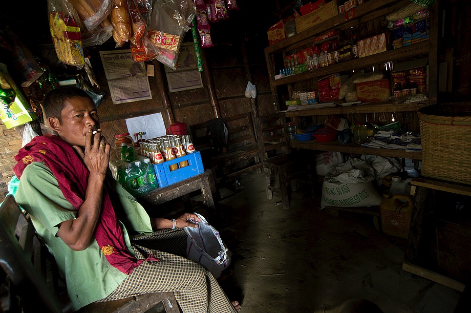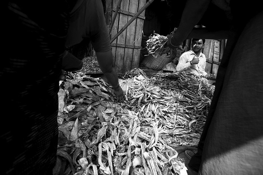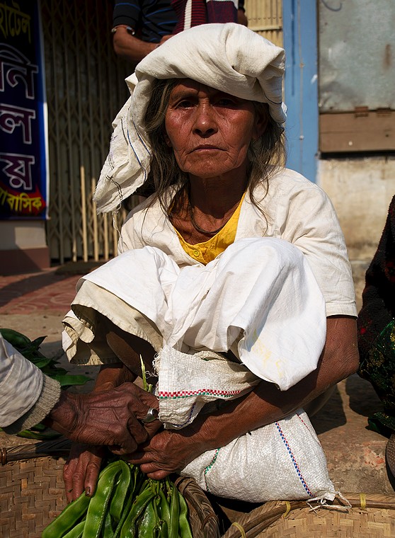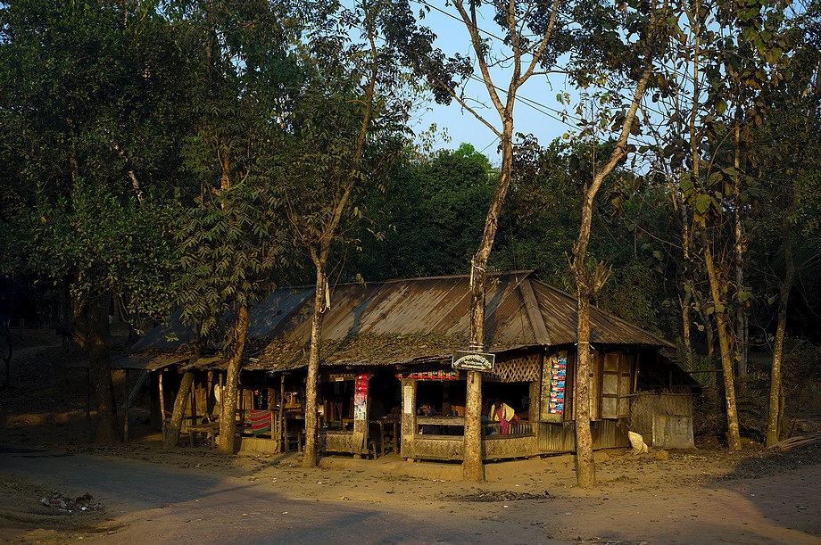 Następnego dnia zastanaiam się gdzie tu pojechać, ładnie położona jest wiocha Langadu, ale to już trochę głębokie Hill Tractsy, dosyć blisko granicy, trochę się obawiam. Dumam, dumam, w końcu wyciągam aparat i idę na bazar. Tu już się zaczyna prawdziwa Azja, a właściwie azjatyckie multi-kulti, Bangladesze, Marmy, Chakmy, z wyglądu niektórzy przypominają Chińczyków, Kambodżów, trochę Birmy, ale gościnność cały czas ta z Bangladeszu. We wsi Gonjopara, tuż przy rzece Cengi, ktoś najpierw się chwali złapaną rybą a potem zaprasza na sesję zdjęciową do swojej chatki, w sklepiku, w którym się potem zatrzymuję na dłużej próbuję zapłacić, ale właściciel zdecydowanie odmawia przyjęcia kasy, na koniec (przedpołudniowej szwędaczki) wracam jeepem do miasta, znów nie chcą zapłaty.