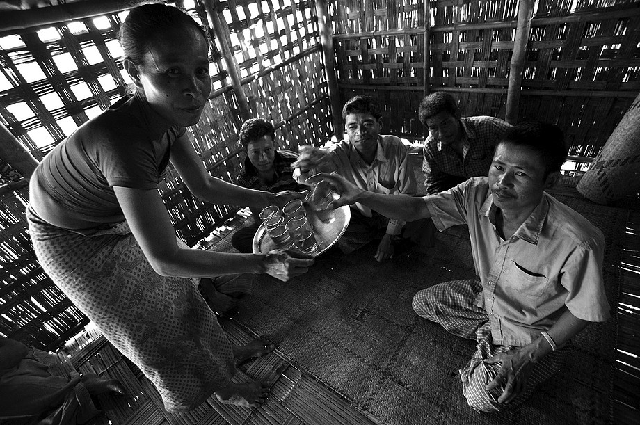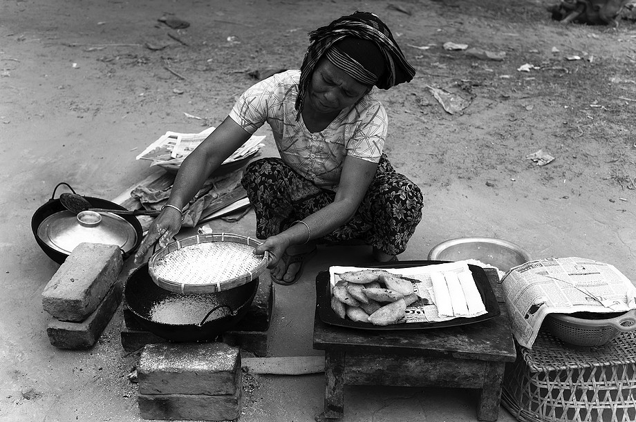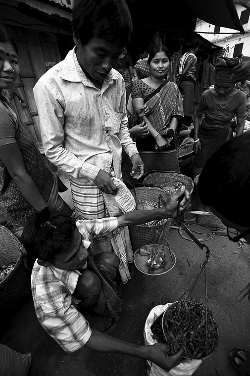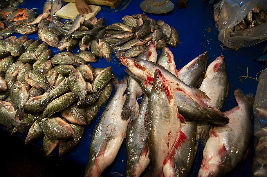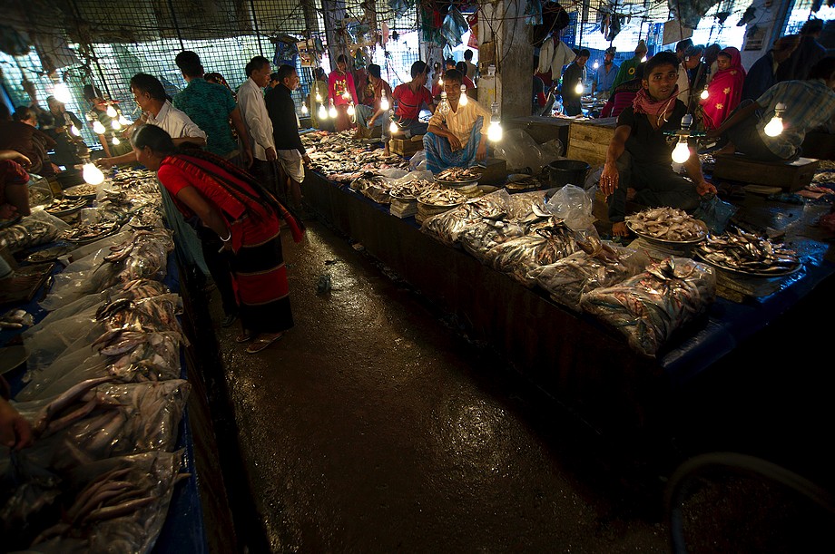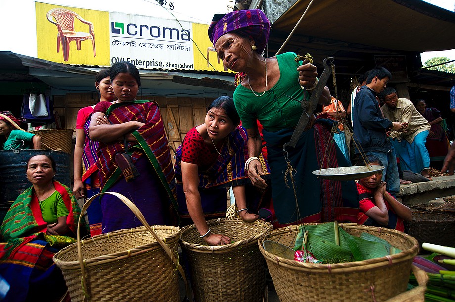 Następnego dnia zastanaiam się gdzie tu pojechać, ładnie położona jest wiocha Langadu, ale to już trochę głębokie Hill Tractsy, dosyć blisko granicy, trochę się obawiam. Dumam, dumam, w końcu wyciągam aparat i idę na bazar. Tu już się zaczyna prawdziwa Azja, a właściwie azjatyckie multi-kulti, Bangladesze, Marmy, Chakmy, z wyglądu niektórzy przypominają Chińczyków, Kambodżów, trochę Birmy, ale gościnność cały czas ta z Bangladeszu. We wsi Gonjopara, tuż przy rzece Cengi, ktoś najpierw się chwali złapaną rybą a potem zaprasza na sesję zdjęciową do swojej chatki, w sklepiku, w którym się potem zatrzymuję na dłużej próbuję zapłacić, ale właściciel zdecydowanie odmawia przyjęcia kasy, na koniec (przedpołudniowej szwędaczki) wracam jeepem do miasta, znów nie chcą zapłaty.