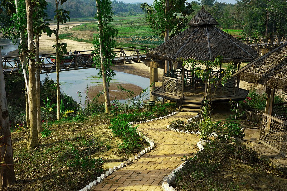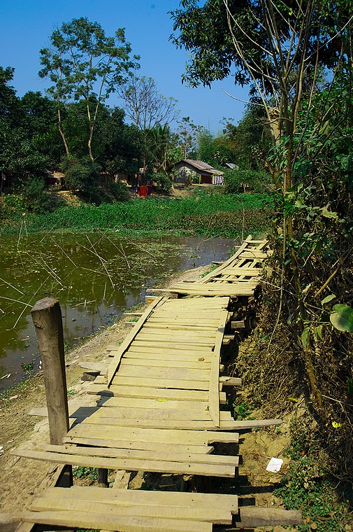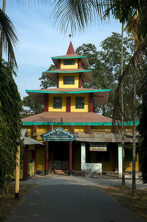 Razem z Rinku jedziemy na dworzec autosowy, ja z zamiarem zostania już w hotelu, ale w końcu idziemy znowu gdzieś za miasto. Przy hotelu Parjatan jest mini ogród botaniczny, wstęp 10Tk, kawałeczek dalej jest jakaś hinduksa świątynia, kolejnych parę km dalej jest całkiem ładna buddyjska stupa, ale tą widziałem tylko z autobusu jadąc do Khagrachhari. Skręcamy na wiochę mijając kolejne buddyjskie klasztorki i knajpki, w których siedzą Marma czy inni tribale, paląc te swoje daby. Potem mostek, rzeczka, jakiś kolejny buddyjski klasztor (Khagrachhari Yongda Buddhist Monastery), potem z powrotem na wieś, rzeczka (tym razem bez mostku, przechodzimy wpław, Rinku chce mnie przenieść na barana, ale się nie daję) i wracamy do głównej drogi kilka km za miastem, skąd wracamy autobusem.