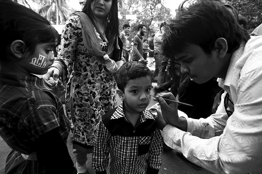 Miła pani w mundurze sprawdza pobieżnie co mam w plecakach, gdy dochodzi do pokazania laptopa, aparatu itp. zaczyna się problem. Pani coś tam sobie buczy pod nosem, gdzieś dzwoni powtarzając co chwilę „custom custom”. W końcu mówi, że mam się udać do celników, dwa domki przed pierwszym officem. Tam miły pan coś najpierw mówi po bengalsku, potem przechodzi na ładny angielski tak jakby chciał wcześniej sprawdzić czy coś kumam. Przyczepia mi do paszportu jakiś kwitek. Wracam do pani, która ponownie ogląda paszport przerywając zbieranie odcisków palców służących za podpis osób niepiśmiennych. Znowu jej się coś nie podoba, dyskusja z koleżanką, telefon, zapytuję ładnie w hindy czy jest jakiś problem. Pani ze śmiechem zwraca się do koleżanki, że niby co ona ma mi odpowiedzieć jak ja bengalskiego nie znam, no ale po moim „hindi bolo” tłumaczy mi coś w hindi. Niewiele rozumiem, ale wychodzi na to, że muszę z powrotem iść do customs, żeby na doczepionym świstku napisać co przemycam. Wracam, dyktuję miłemu panu, że mam aparat taki to a taki, obiektywy, laptop itp. Wracam do pani. Wszystko ok. Wychodzę z Indii.