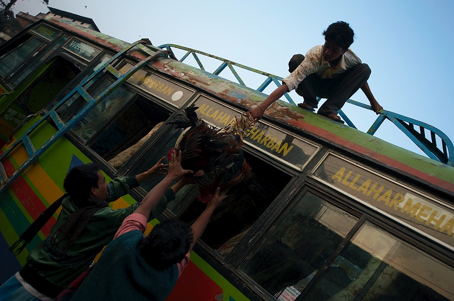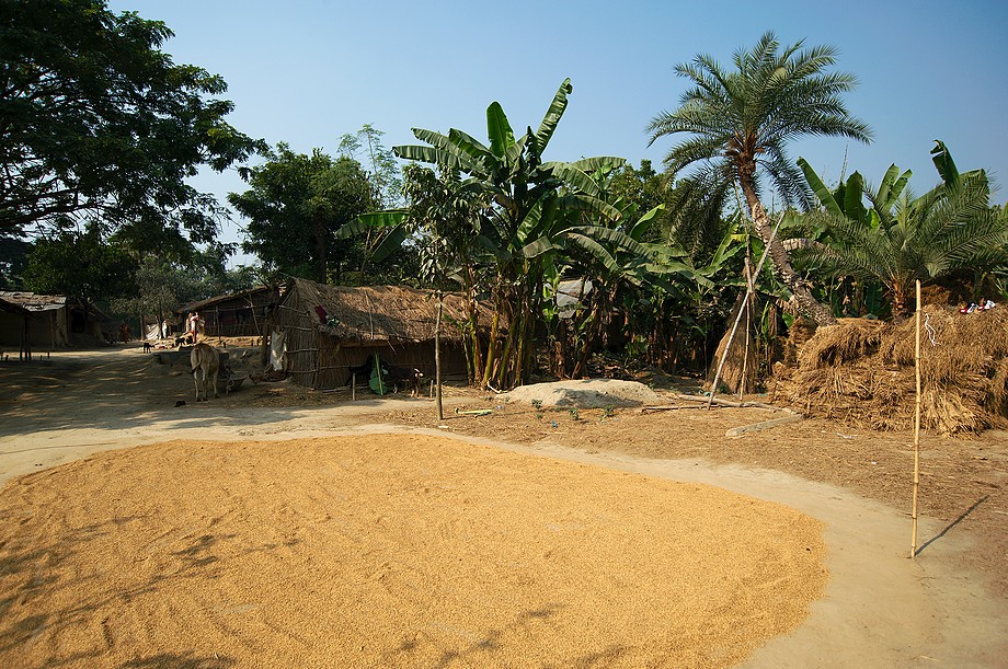 W pociągu znowu trochę zawiewa z okna, ale da się przeżyć. Na początku jest lekki nadkomplet, walczę jak lew, żeby znowu watacha nie wlazła na moje łóżko, jednemu się udaje, ale po niecałej godzinie się rolzuźlnia, ludzie gaszą światła i idą spać. Do Malda Gaur (jedna stacja przed Malda Town) dojeżdżam z ponad godzinnym opóźnieniem, trochę po 9ej rano. Ze stacji idę ok. 1km w stronę Maldy do skrzyżowania, tam jeden koleś proponuje mi jeepa za 1000inr, oczywiście uprzejmie dziękuję, chwila gadki z lokalesami w miksie hindi/bengalskiego/angielskiego i podjeżdża autobus. Do Mahadipuru jest 14km, bus kosztuje 6inr, mam tylko 5inr drobnych, ale też może być.