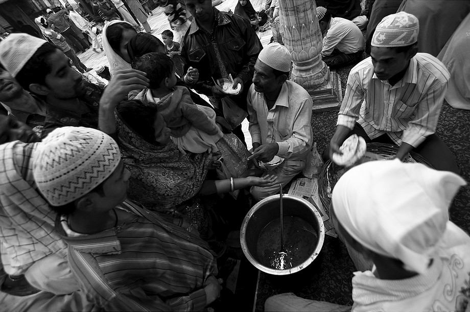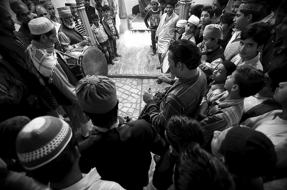 No więc stęskniony za ciepłem dojeżdżam ok. 4 rano do Delhi ubrany w 3 koszule i bluzę bo jest zimno, półtorej godziny czekam aż otworzą metro, dojeżdżam do Pahara. Klita za 200ru z karaluchami i zapchanym kiblem, przysypiam na jakieś 3 godziny, a potem dla równowagi wrażeń estetycznych idę do Subwaya a potem jeszcze dopycham się w KFC. Nażarty jadę do Nizamuddin Dargah spotkać się ponownie z Vinitem. Obfociłem co chciałem zanim Vinit przyszedł, potem idziemy razem do drugiego czegoś podobnego, gdzie dla odmiany poza nami dwoma oraz 3 tenorami śpiewającymi qawali nikogo nie ma (ponoć rodzina 3 tenorów śpiewa w tym miejscu od 750 lat, Vinit robi reportaż o aktualnym pokoleniu). Później dojdą jeszcze 4 osoby, w tym 3 białasów. Tym razem qawali bez muzyki, z jakimiś bardziej melancholijnymi tekstami bo święto jest, Mahomet chyba do nieba wniebowstąpił czy coś w tym stylu. Idziemy się jeszcze przejść po okolicy, po raz chyba pierwszy widzę jak wygląda piec tandoori, gdzieś w jakimś kolejnym kościele znowu impreza chyba z okazji tego samego święta, tu dla odmiany nikt nie śpiewa za to grają na bębnach a dookoła biegają dzieciaki.