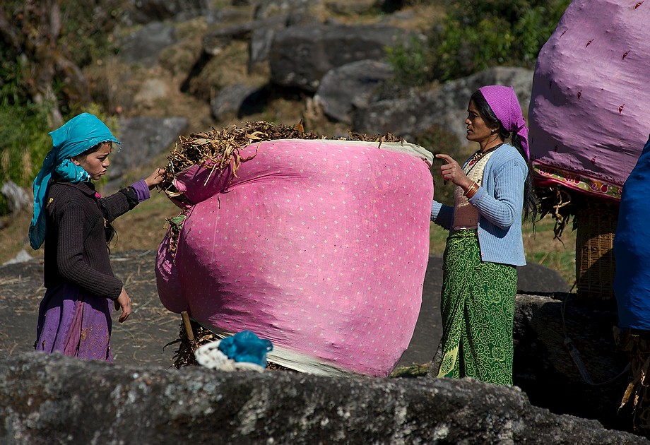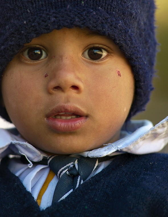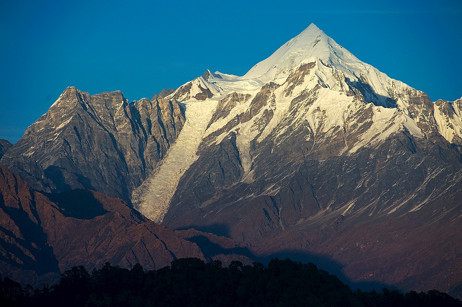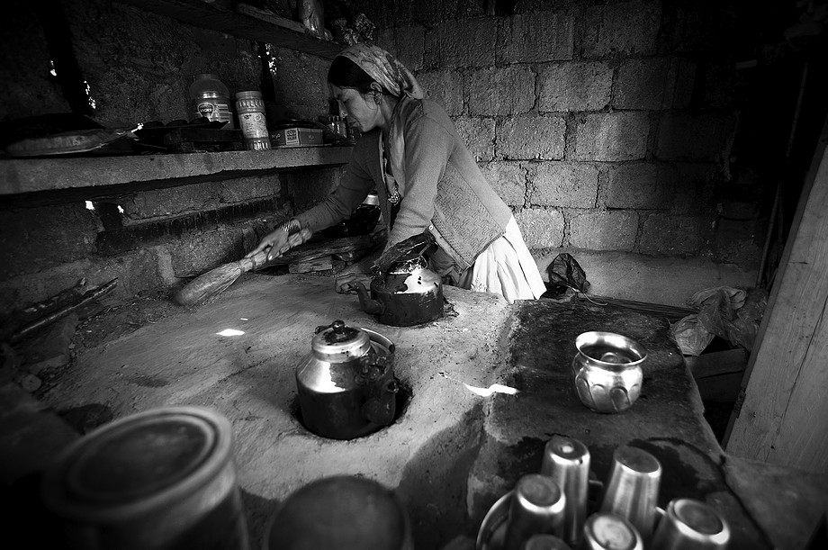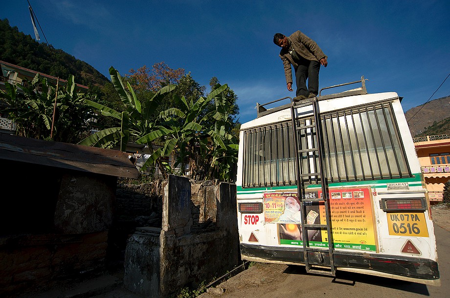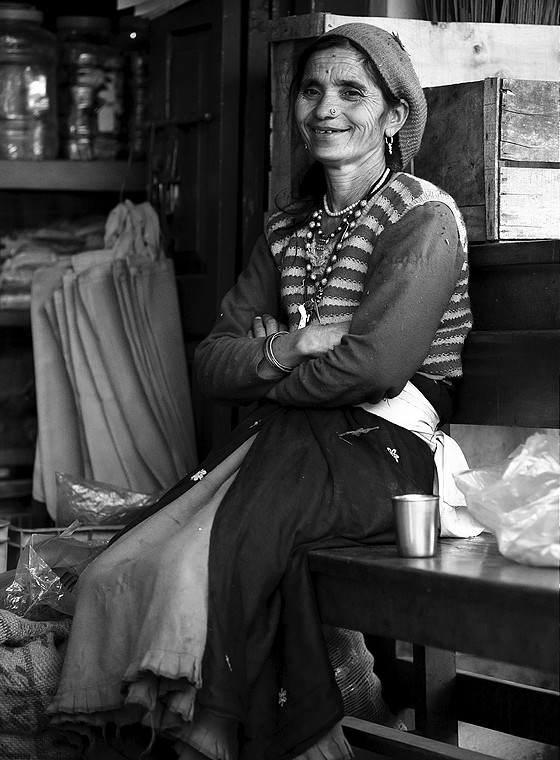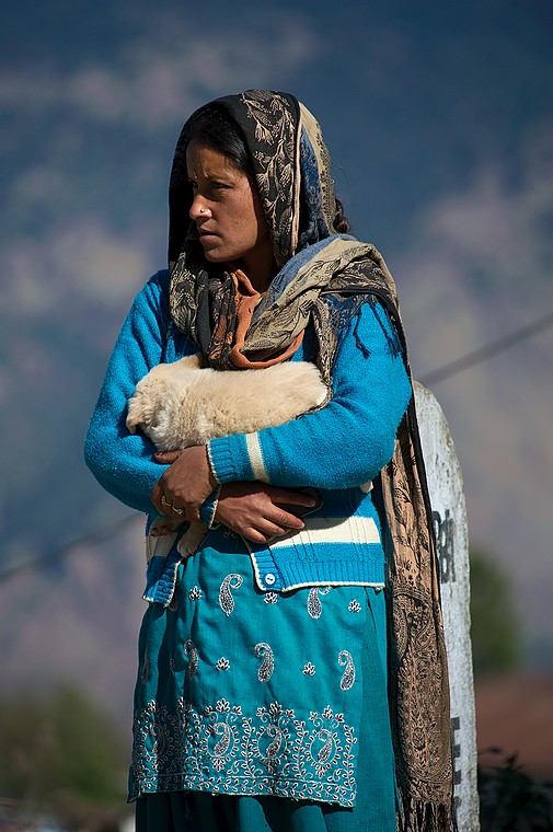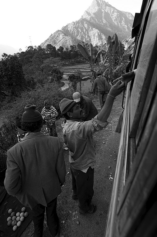 No może trochę przesadziłem z zachwytami, są miejsca gdzie jest ładniej, ale i tak jest ok. Autobus, który wg. LP miał jechać jakieś 6h jedzie 3h dłużej, ale specjalnie mi to nie przeszkadza, bo przez cały czas mam widoczki na pagóry, w Thalu przez moment widać jakiś biały szczyt, więcej się pokazuje gdy wjeżdżamy na drugą stronę góry, na tą po której jest Munsyari. To co widać to Panchachuli Range, Nanda Devi i podobne są schowane za jakimiś mniejszymi górkami. Ale i tak jest ok, tylko zimno. Niby jestem w ciepłym kraju, ale jednak na północy, na ponad 2200m, no i jest koniec listopada. Wbijam się najpierw do jakiejś ciemnej knajpy przy bus standzie, jest ryż, mięcho i warzywa, obsługująca mamuśka mówi do mnie „Siadaj dziecko, jedz, jedz. Jeszcze ryżu? Może warzywek?”.