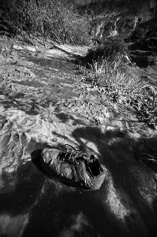 Gdzieś na pagórkach znajduję ściankę do wspinania, byłaby fajna i do wspinaczki pod górę i do trawersu, ale skała jest bardzo miękka i co chwila odrywa się kawałek, którego trzymam się ręką albo na którym stoję. W Rishikeshu było to samo.