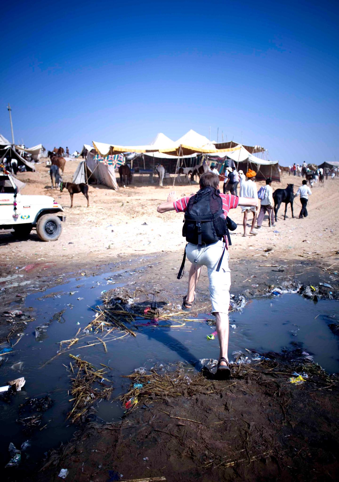 W drodze z PKP na Paharganj (po przyjeździe z Pushkaru) do laptopa wlewa się pół litra wody. Matryca z począku jest czytelna, ale ma plamiasty wzorem. Z czasem widoczność się pogarsza, a w końcu chwilę po tym jak włączam kopiowanie zdjęć na kartę, którą chcę dać M żeby przywiozła do Polski, przestaje być widać cokolwiek. Czasami odzyskuje przytomność, ale ostatecznie gaśnie na wieki. Po wylocie M jadę do Nehru Place, które przypadkiem okazuje być giełdą komputerową, co by tam nabyć nowego lapka. Z większym dyskiem, lepszą baterią i 200PLN tańszego (a ostatniego dnia w Delhi udaje mi się opchnąć starego za parę tysi, mógłbym dostać więcej, ale to była niedziela i większość sklepów była pozamykana). Wieczorem uderzam do Nizamuddin Dargah, gdzie jeszcze będąc w Pushakrze umówiłem się z Vinitem. Słuhamy sobie sufijskiego grania, robimy zdjęcia. Tego samego dnia jest jakieś święto państwowe oraz urodziny jakiegoś sikhijskiego guru, z tej okazji jest też jakaś impreza w gurudwarach, w tym w Bangla Saheb Gurudwara stosunkowo niedaleko od Connaught Place, ale już nie chce mi się tam jechać. Vinit się wybiera. Ja wracam na Pahara autobusem (166, 181 lub 894, za 15INR, prościej i taniej niż metrem).