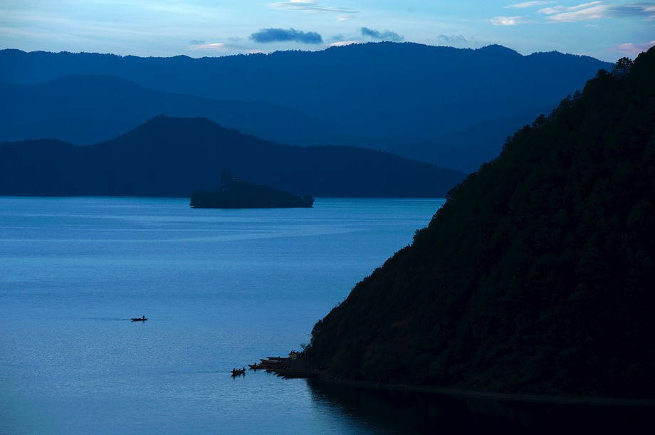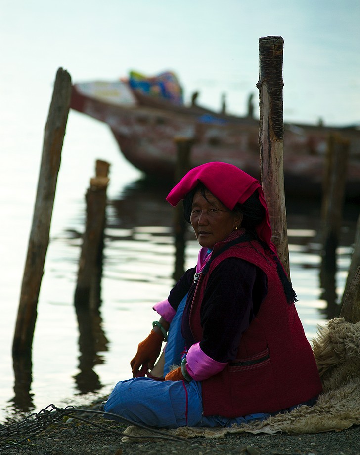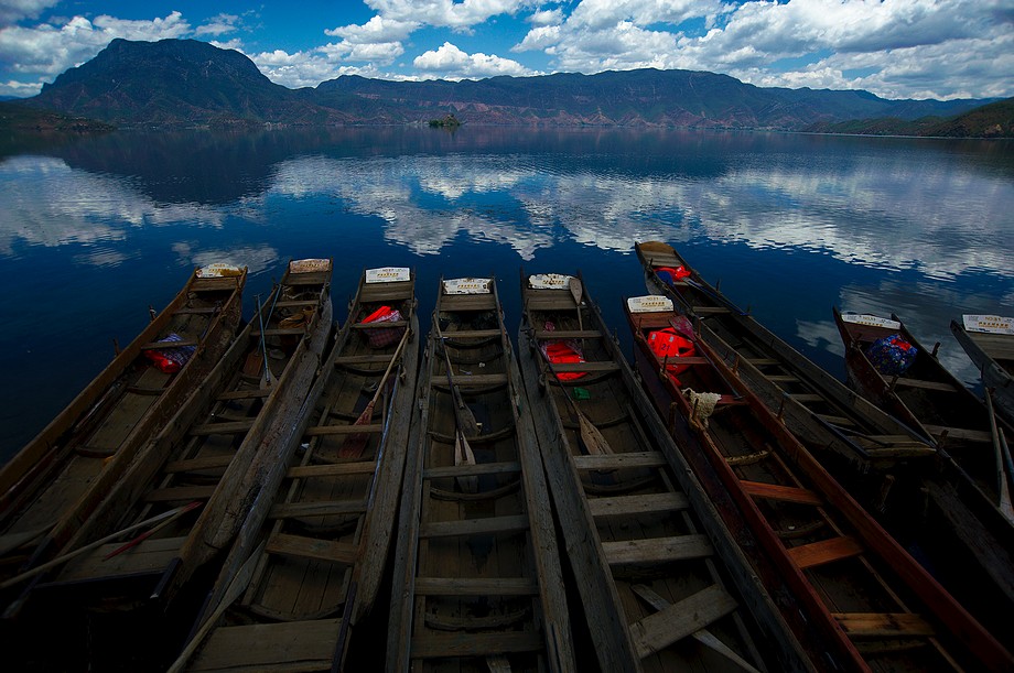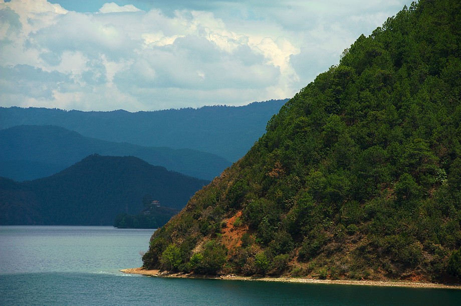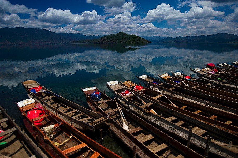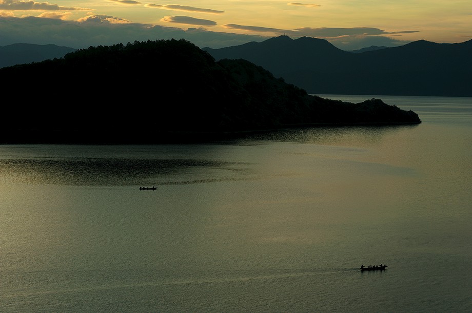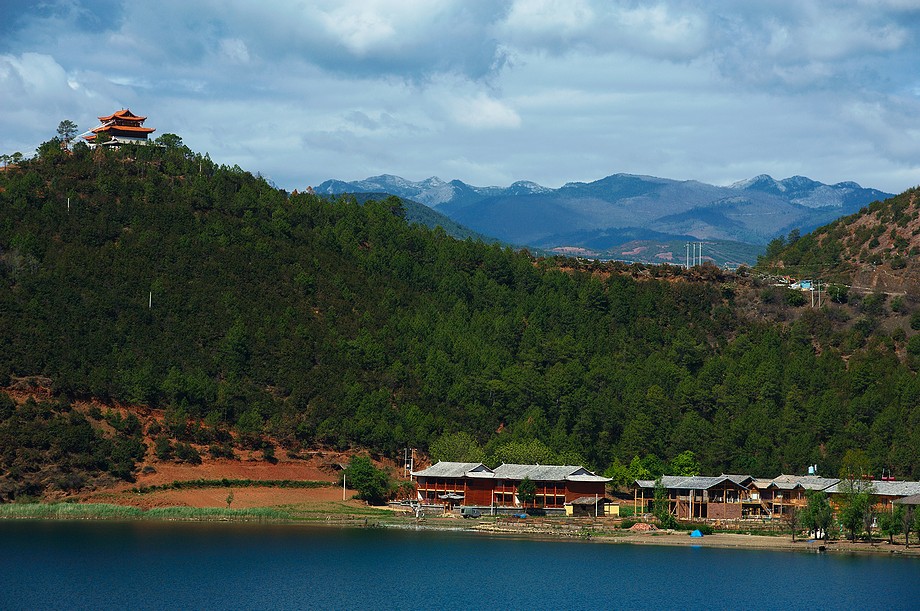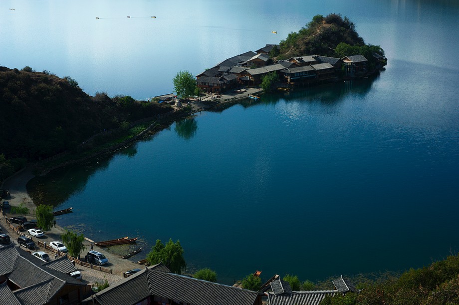 Jezioro – Lugu Hu to po naszemu Lugu Lake – też spoko. Widoczek jest tuż za kasą biletową (gdzie poza biletem dostajemy Women’s Kingdom Passport i jakieś broszurki) ale po raz pierwszy ukazuje się kawałek przed nią, tuż za wyjazdem z tunelu – cały autobus spontanicznie na jego widok zaczyna klaskać. Za wjazd trzeba zabulić tu 100y, poza 80y za sam autobus, więc trochę droga impreza. Pół minuty za ową kasą kierowca się zatrzymuje i oświadcza, że jest przerwa na fotografię, więc wszystkie chińczyki wyskakują na zewnątrz i robią sobie fotki. Okolice chyba też mają potencjał, chociaż nigdzie się nie zapuszczam bo się kuruję. Ale jest na tyle ok, że z chęcią zostałbym dłużej, tylko problem w tym, że muszę wracać do Lijiangu załatwić jedną sprawę z Biurem Bezpieczeństwa.