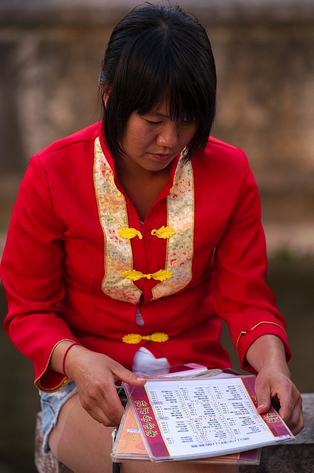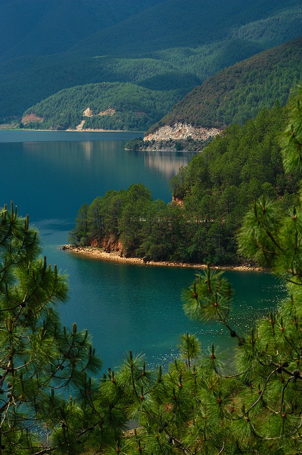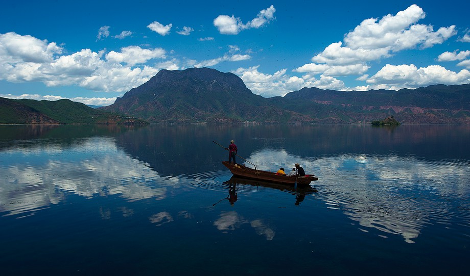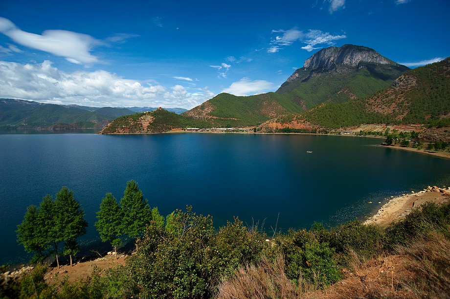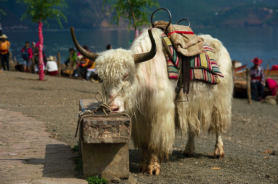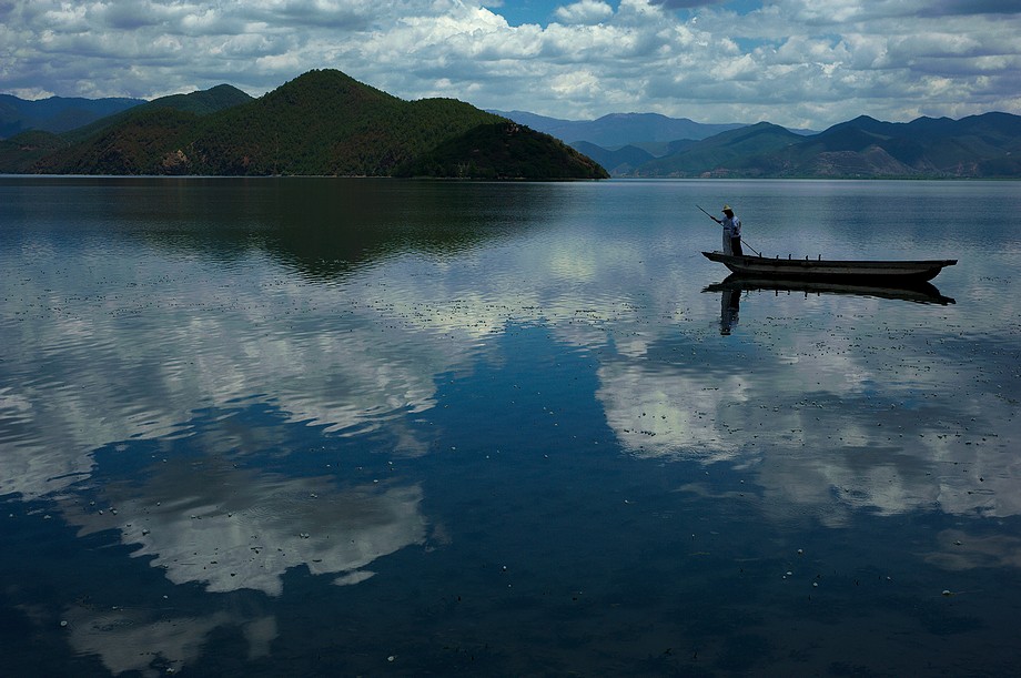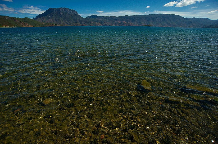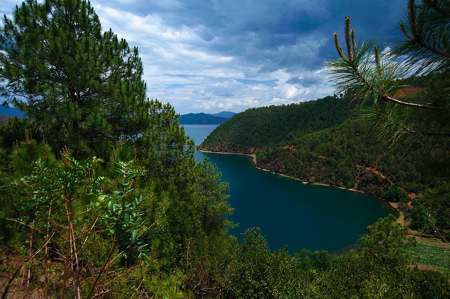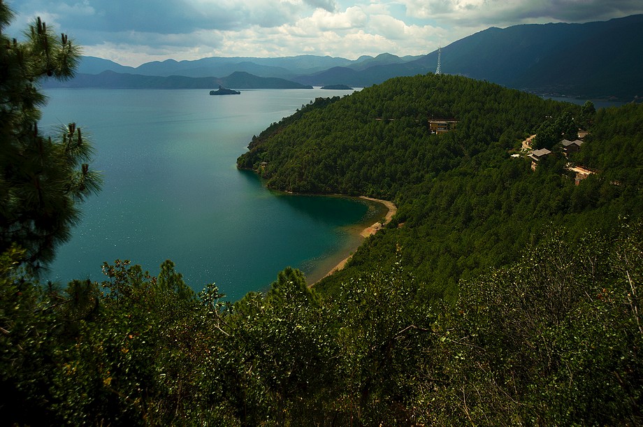 Jezioro – Lugu Hu to po naszemu Lugu Lake – też spoko. Widoczek jest tuż za kasą biletową (gdzie poza biletem dostajemy Women’s Kingdom Passport i jakieś broszurki) ale po raz pierwszy ukazuje się kawałek przed nią, tuż za wyjazdem z tunelu – cały autobus spontanicznie na jego widok zaczyna klaskać. Za wjazd trzeba zabulić tu 100y, poza 80y za sam autobus, więc trochę droga impreza. Pół minuty za ową kasą kierowca się zatrzymuje i oświadcza, że jest przerwa na fotografię, więc wszystkie chińczyki wyskakują na zewnątrz i robią sobie fotki. Okolice chyba też mają potencjał, chociaż nigdzie się nie zapuszczam bo się kuruję. Ale jest na tyle ok, że z chęcią zostałbym dłużej, tylko problem w tym, że muszę wracać do Lijiangu załatwić jedną sprawę z Biurem Bezpieczeństwa.