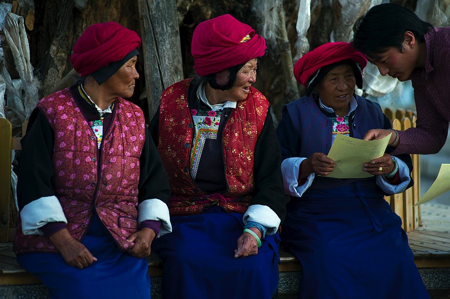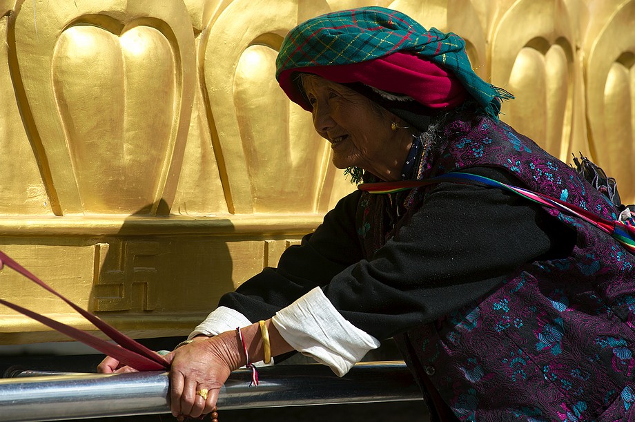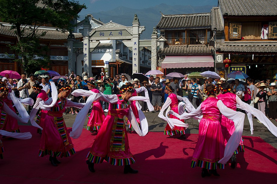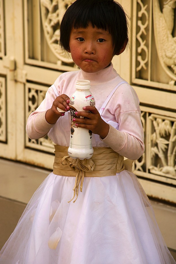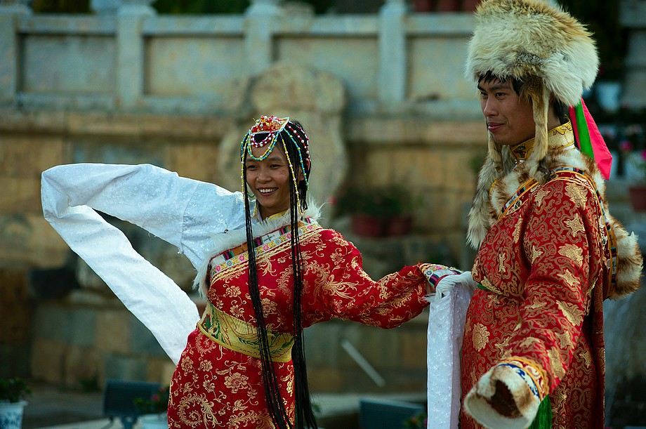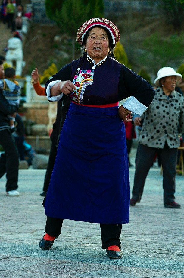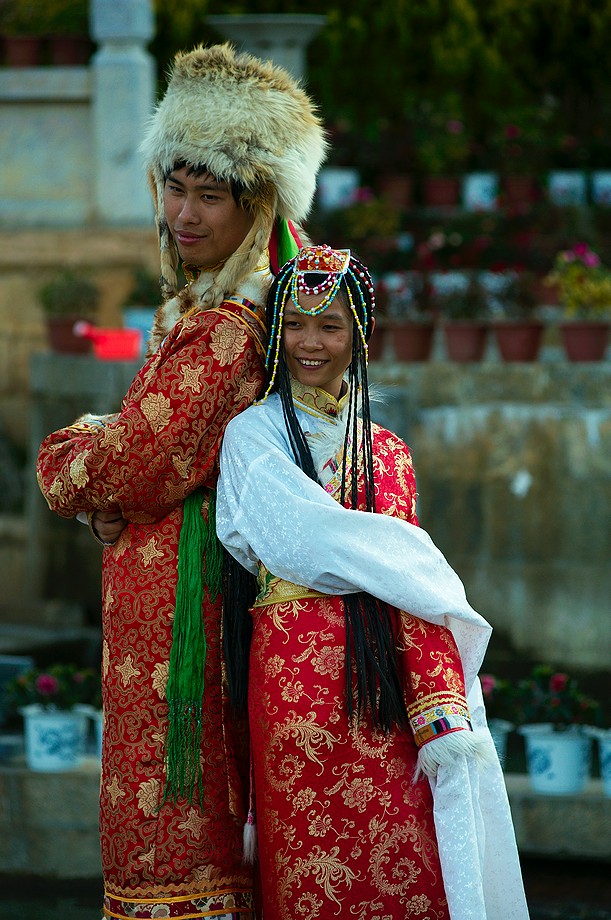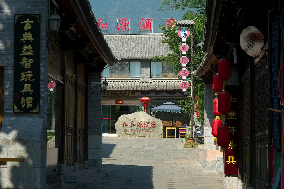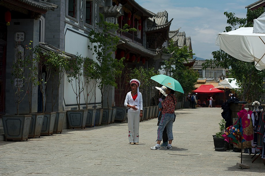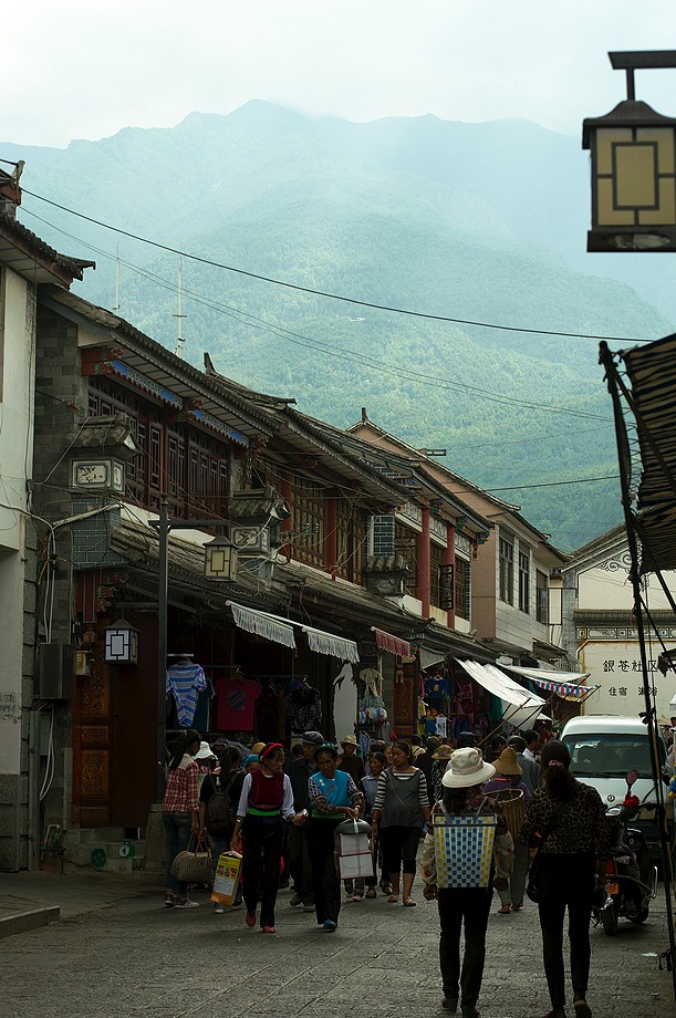 Busik trochę mniej przyjemny niż ten z Jinghongu, ciaśniej i śmierdzi skarpetkami. Z krótkim noclegiem gdzieś nie wiadomo gdzie po 11h jazdy docieram do Shangri La. 3500m npm, ale jakoś tego nie czuję, poza tym, że o 6ej rano jest zimno a ja w krótkim rękawku, krótkich spodenkach i sandałkach. Ale po założeniu wszystkich pozostałych ubrań łącznie z czapką (tybetańską z Sikkimu) jest ok. Główne miasto takie sobie, ale po dotarciu do starówki akurat jest fantastyczne wschodzące słoneczko więc z plecarami jeszcze przed zameldowaniem się w hotelu robię zdjęciową rundkę dookoła. Oczywiście Krupówki, sklep na sklepie, hordy turystów, ale przynajmniej wygląda to jak stare miasto a nie jak zachwalane niewiadomoco np. w Chiang Mai, gdzie stare to jedynie były świątynie i szczątki murów dookoła.